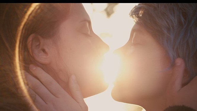 아델이 학교를 마치고 학교를 나서자, 놀랍게도 학교 앞에서 엠마가 기다리고 있습니다. 학교 친구들은, "여자야 남자야?", "정말 레즈비언 같다." 등등의 편견 섞인 말을 내뱉습니다. 아델은 무언가에 이끌리듯 엠마에게로 다가갑니다. 친구들이 아델을 계속 불러도, 뒤 한번 돌아보지 않고 곧장 엠마에게로 직행하죠. 본능이 의식을 집어삼킨 것 같았습니다. 엠마는 아델과의 만남을 초반에는 조금 주춤하는 듯 보였지만, 서로의 마음을 확인한 후엔 그런 기색을 보이지 않았습니다.